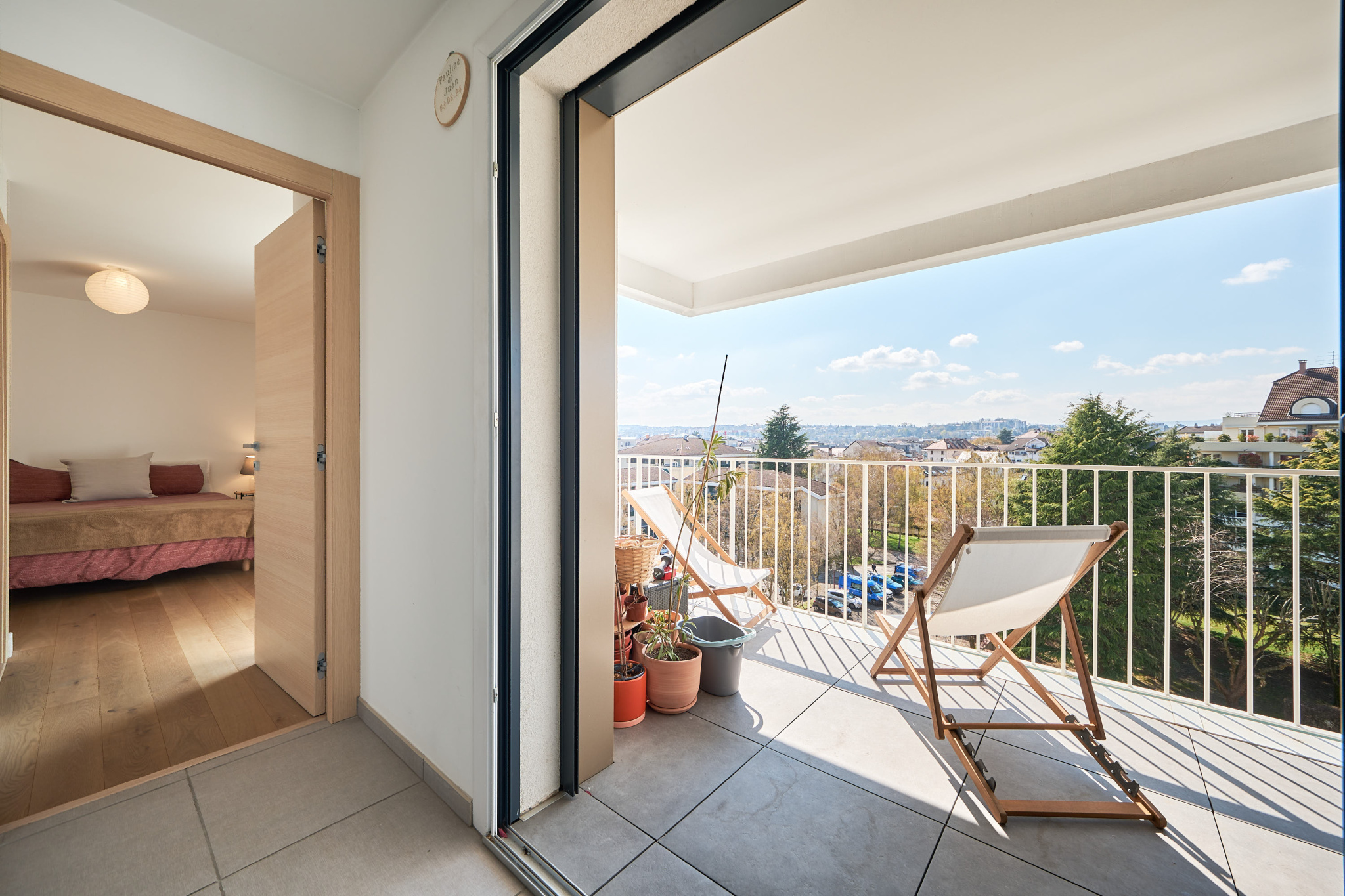 Annecy (74000)Exclusivité Albigny Immobilier - Rare à la vente - En 6ème étage sur 7 d'un immeuble de standing construit en 2021 dans un environnement calme au coeur d'Annecy dans le quartier des Romains, appartement 2 pièces de 52 m² offrant une entrée avec rangements, une pièce de vie lumineuse de 27.17m² donnant accès à la terrasse de 28 m² exposée Ouest avec vue dégagée sur les montagnes, une cuisine américaine équipée. La partie nuit offre une chambre avec rangement, en suite avec une salle d'eau, les WC sont séparés. Vendu avec une cave. Possibilité d'acquérir un garage au sous sol de l'immeuble pour un supplément de 46.000 €. DPE : en cours. Charges annuelles : 1.300 €.