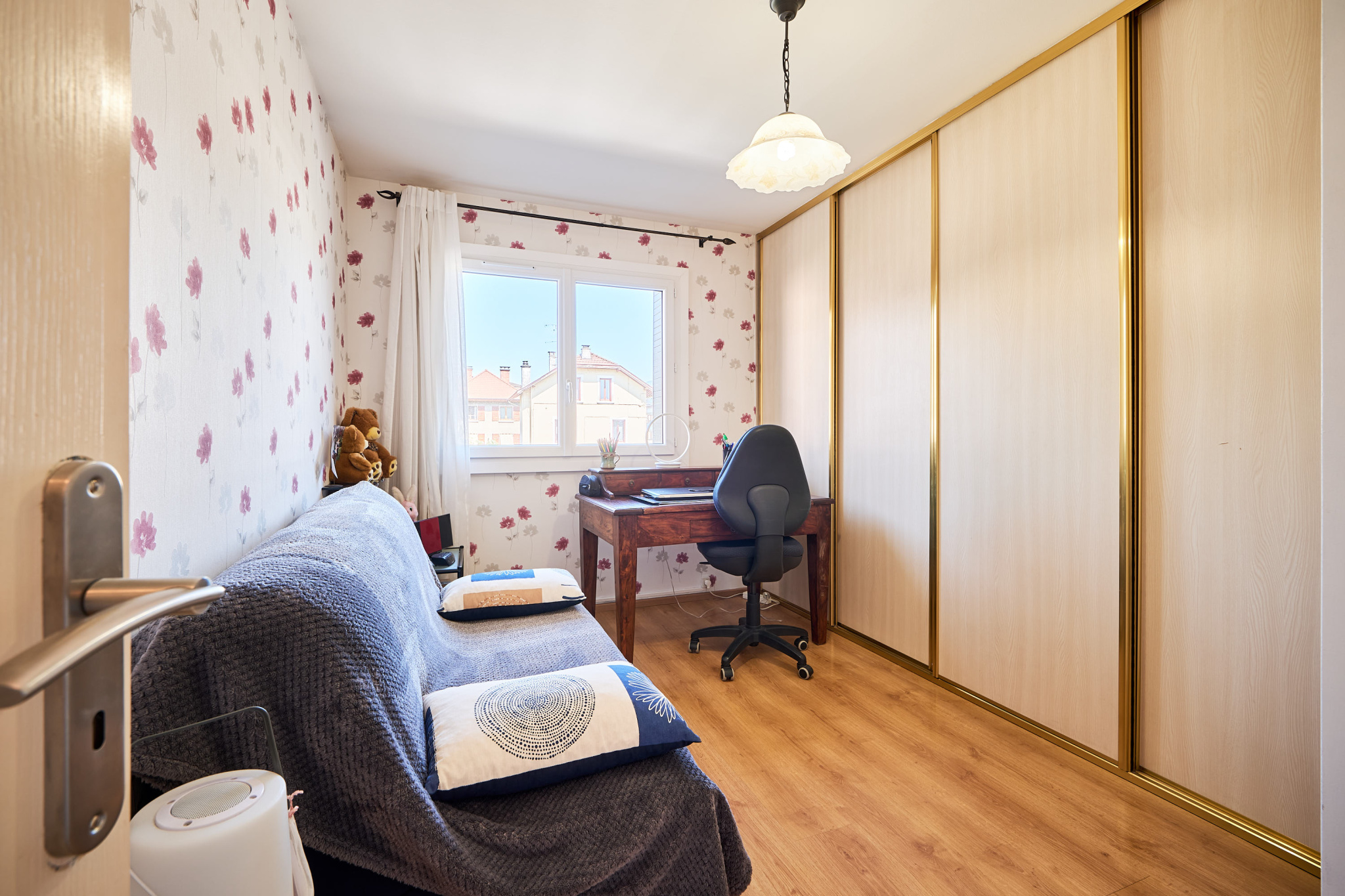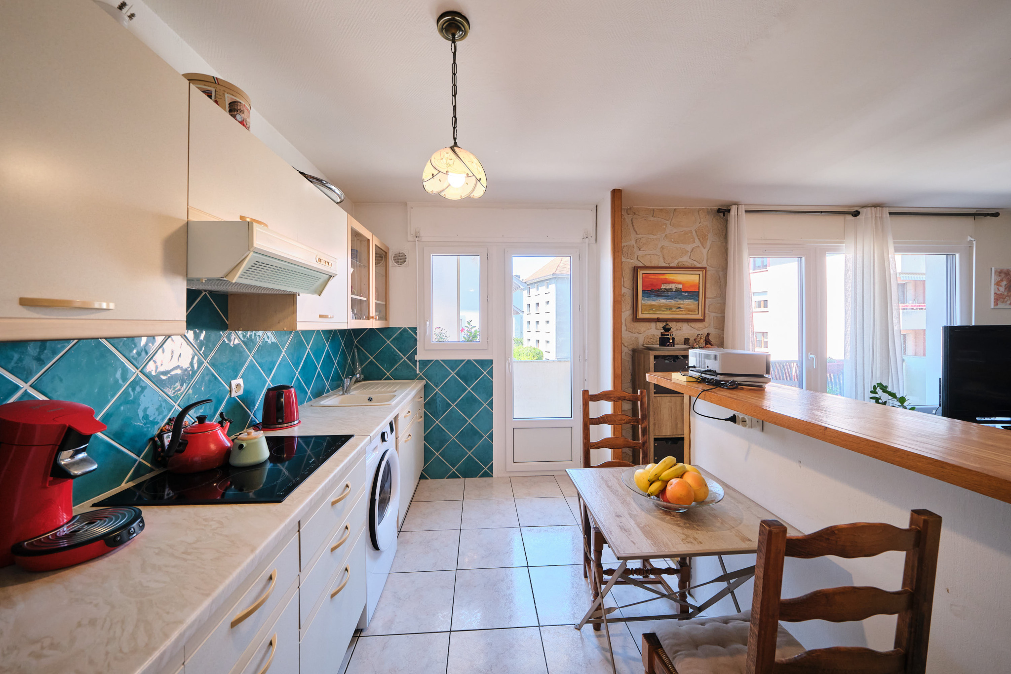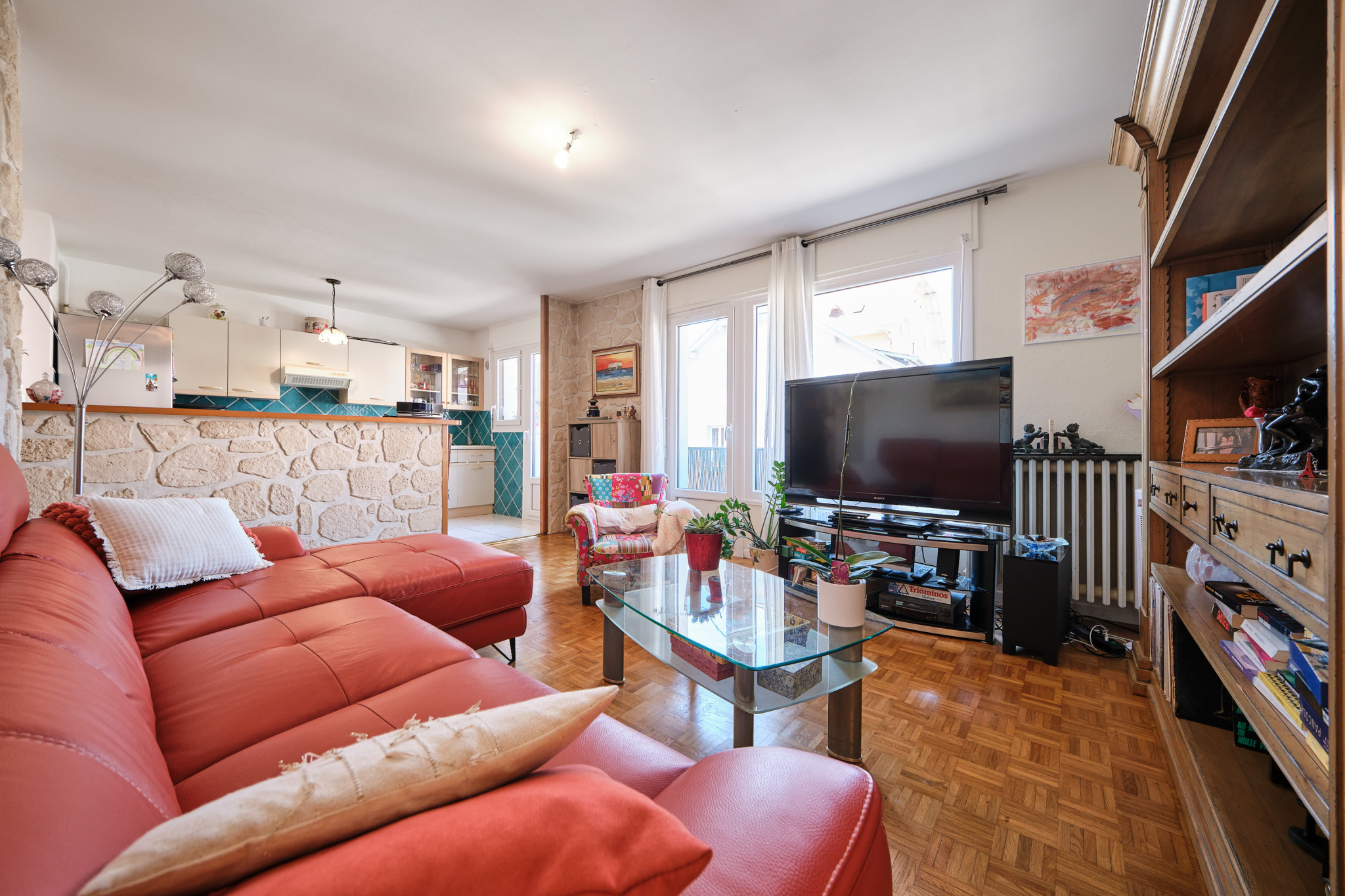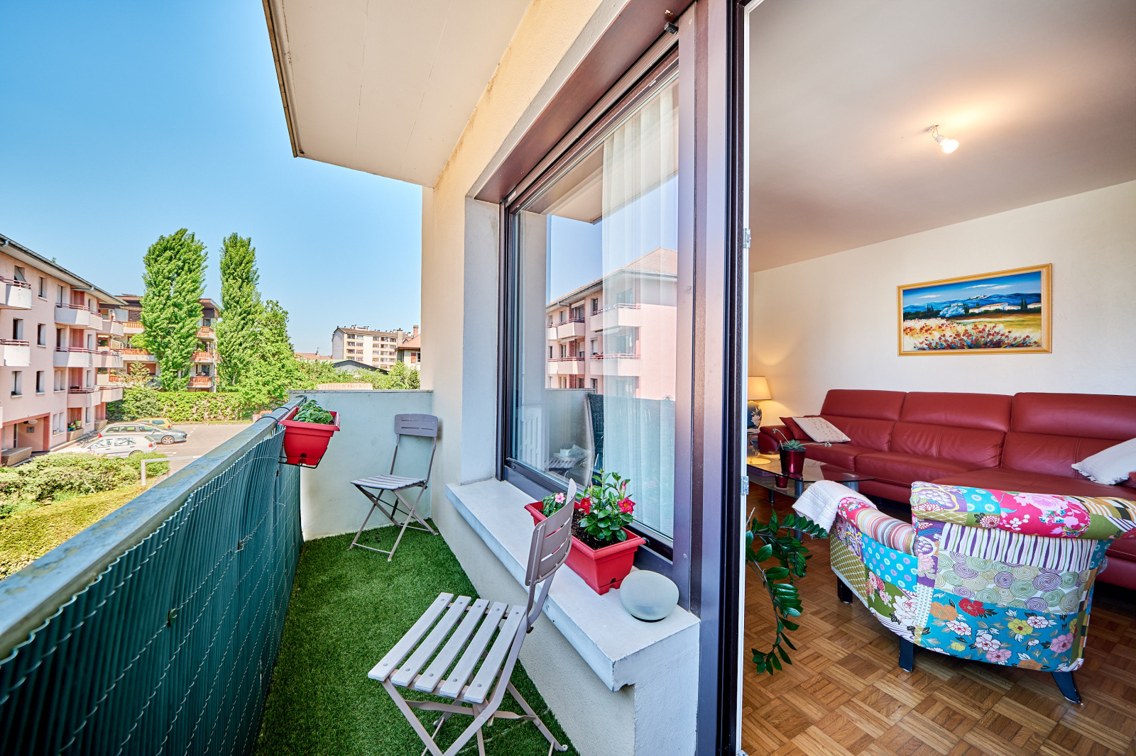 Annecy (74960)Dans une petite copropriété à proximité du centre ville et des commerces à pied...agréable T3 en étage au calme. Entrée avec placards, donnant sur le salon avec cuisine ouverte, accès balcon ouest au calme. Dans la partie nuit, 2 chambres, 1 salle de bains et toilettes indépendantes. En annexes : 1 cave.