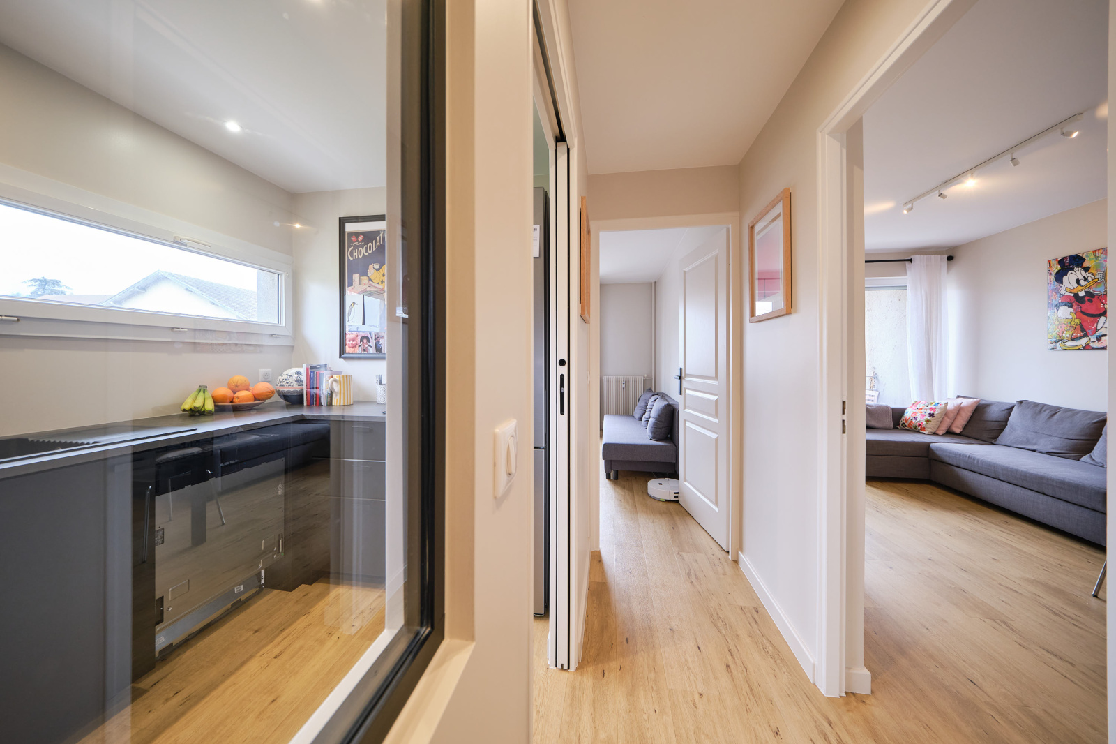 Annecy (74000)Situé au RDC surèlevé d’une copropriété très bien située au porte du coeur de ville, 4 pièces entièrement rénové de plus de 70 m².
